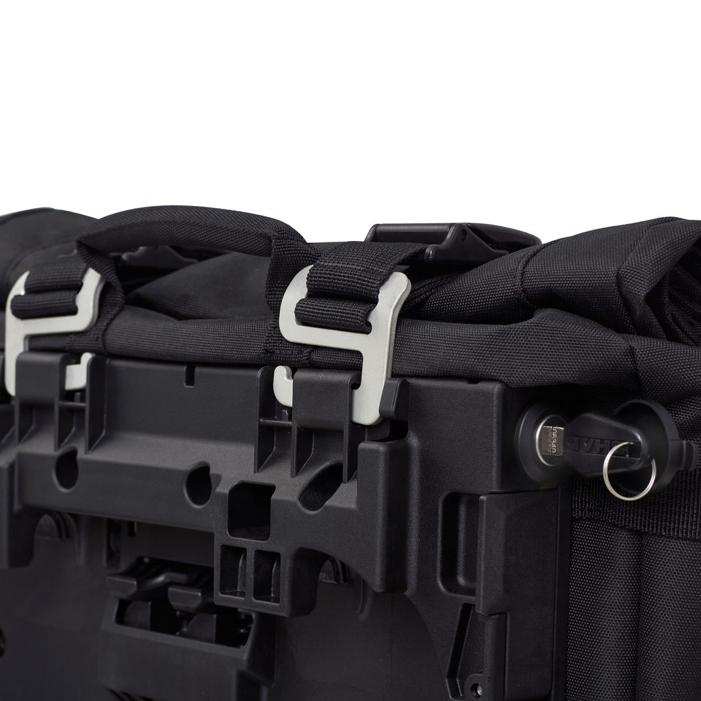 Patentovaný Double Locking System umožňuje uzamknout brašnu k montážní sadě SHAD 4P System a zároveň chrání obsah před neoprávněným přístupem – vše pomocí jednoho klíče. Zámek je chráněn proti prachu a vybaven nejnovější prémiovou vložkou SHAD.