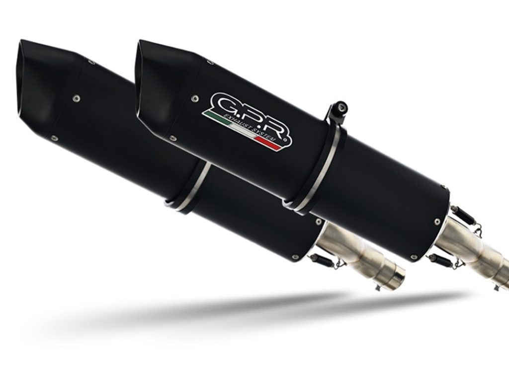 Dvojitá koncovka výfuku uchycená šrouby GPR FURORE CAT.81.FUNE Matná černá zahrnuje odnímatelné dB killery a katalyzátory