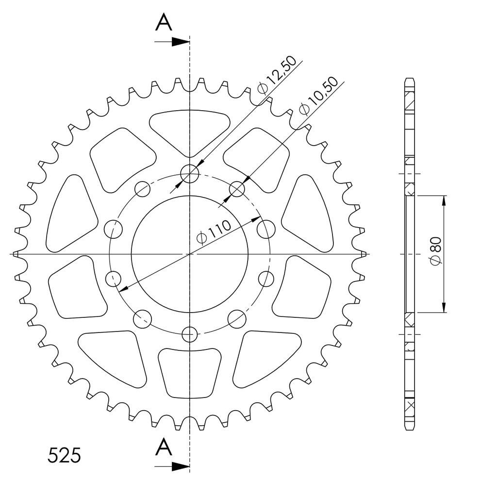 Hliníková řetězová rozeta SUPERSPROX RAL-1332:45-BLK černý 45 zubů, 525