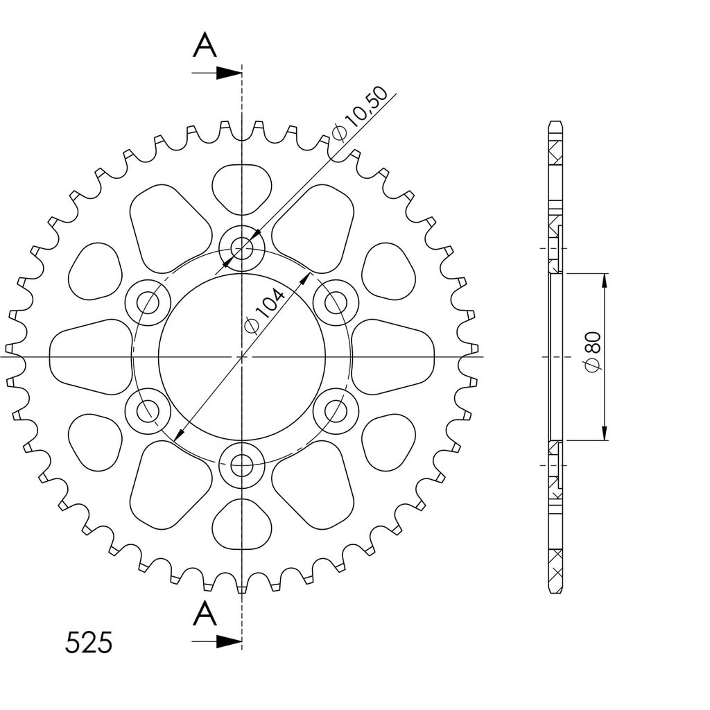 Hliníková řetězová rozeta SUPERSPROX RAL-1489:42-BLK černý 42 zubů, 525