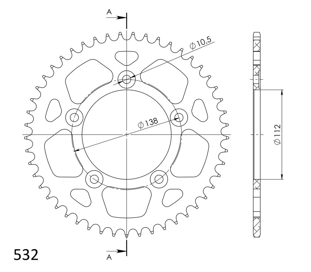 Hliníková řetězová rozeta SUPERSPROX RAL-1873:49-BLK černý 49 zubů, 532