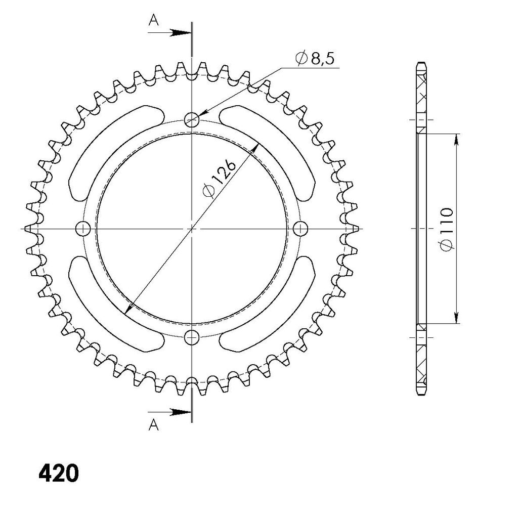 Hliníková řetězová rozeta SUPERSPROX RAL-455:46-BLK černý 46 zubů, 420