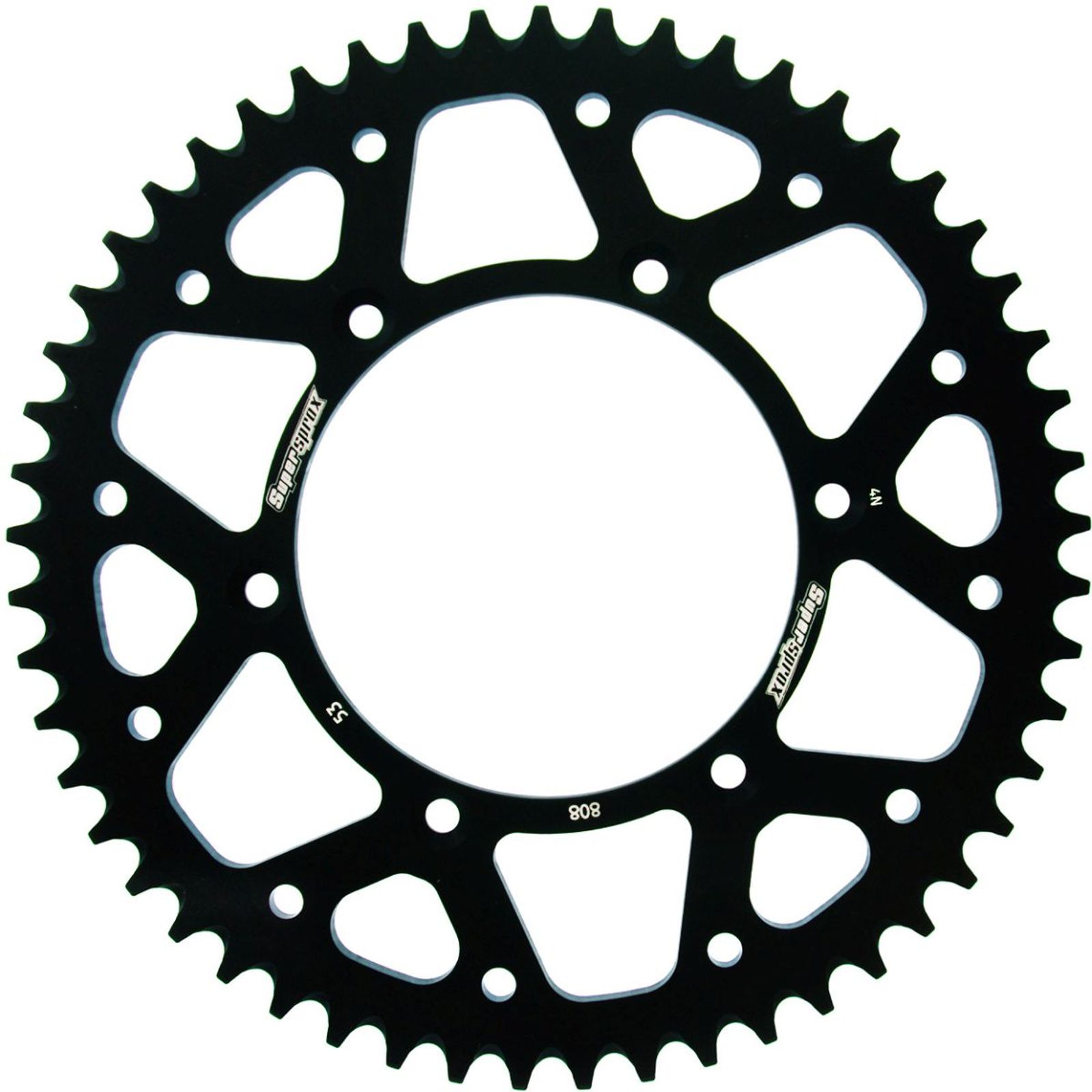 Hliníková řetězová rozeta SUPERSPROX RAL-808:53-BLK černý 53 zubů, 520