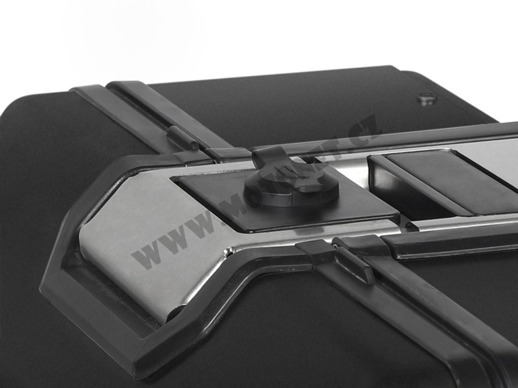 Unikátní integrovaný mechanismus zámku a madla umožňuje jednoduché ovládání jednou rukou a snadnou demontáž z motocyklu.