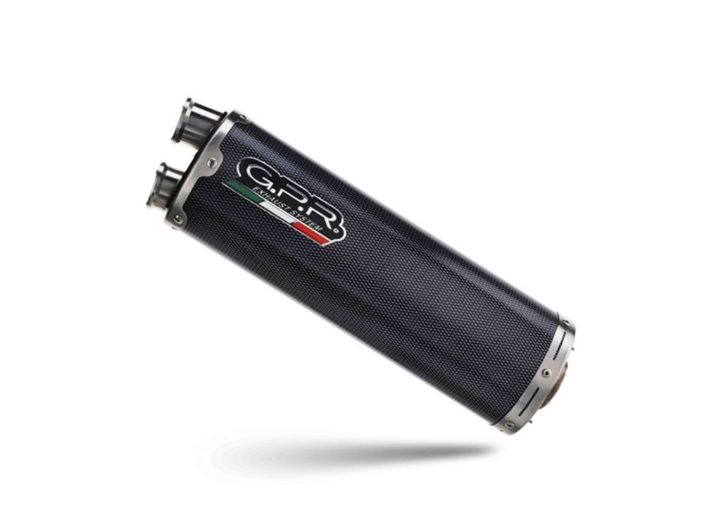 Koncovka výfuku Slip-on GPR DUAL POPPY E4.KT.105.1.DUAL.PO Karbonový vzhled zahrnuje spojovací svod a odnímatelný dB killer