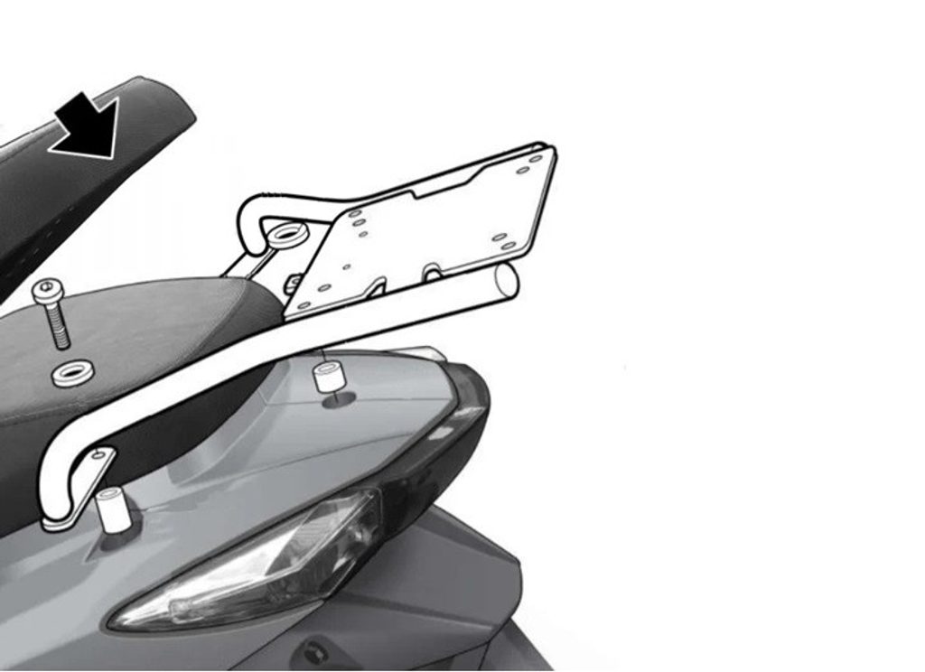 K upevnění vrchního kufru SHAD na motorku stačí namontovat tuto montážní sadu, plotna je vždy součástí kufru (kromě kufrů TR48/TR37).