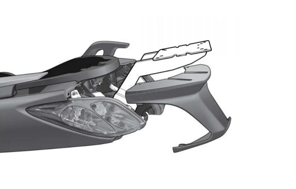 K upevnění vrchního kufru SHAD na motorku stačí namontovat tuto montážní sadu, plotna je vždy součástí kufru (kromě kufrů TR48/TR37).