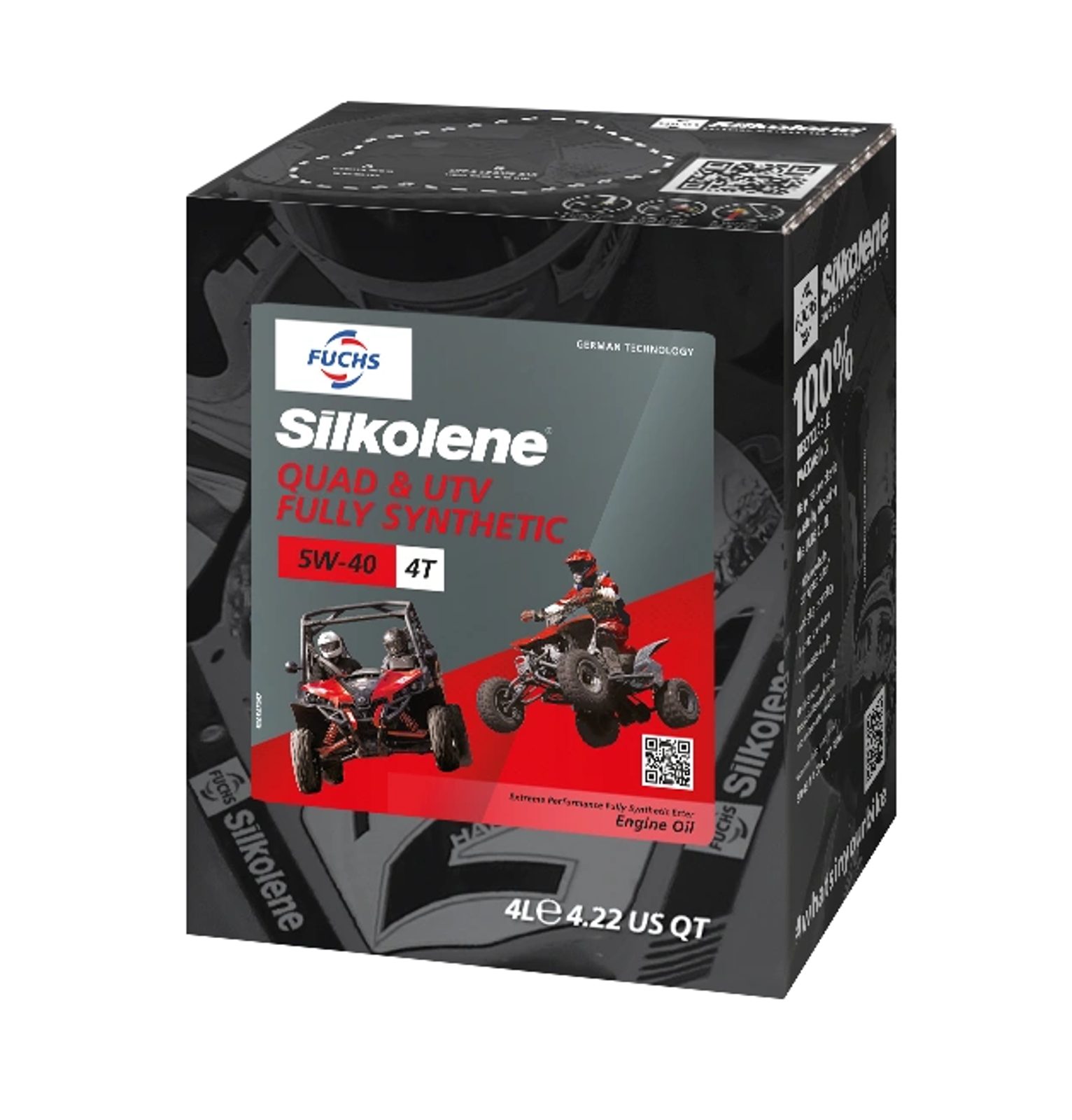 QUAD & UTV 5W-40 je prémiový plně syntetický motorový olej speciálně vyvinutý pro off-road a užitková vozidla. Díky nejnovějším technologiím a moderní aditivní chemii poskytuje QUAD & UTV 5W-40 vynikající ochranu a vyšší výkon motorů i převodovek v širokém rozsahu okolních teplot. Schopnost udržet viskozitní třídu po celou dobu použití zajišťuje konzistentní výkon po celou životnost oleje. K dispozici v balení 4 l (Lube Cube) a 205 l.