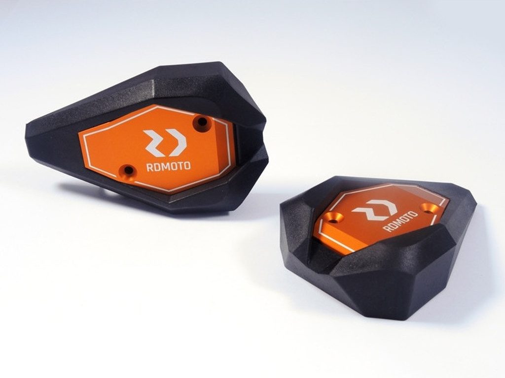 Padací slidery RDMOTO KTM13N černý polyamid s oranžovými krytkami