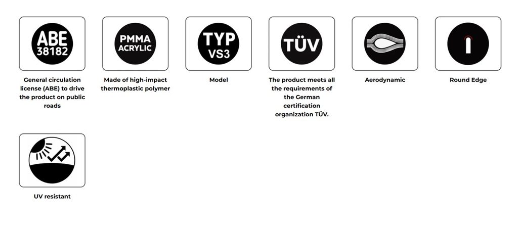 Jejich kompaktní rozměry, o něco menší než originální plexi (pokud je jím motocykl vybaven), zajišťují výraznou ochranu a pocit komfortu, stejně jako sportovní vzhled, aniž by omezovaly zorné pole jezdce.