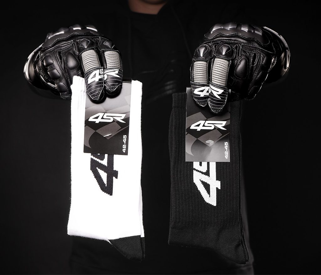 Jsme závodníci, a vy také! Vysoké ponožky 4SR jsou vhodné do tenisek, kde bude logo/nápis vidět. Loga jsou umístěná stejně jako na závodní kombinéze, při výměně stran ponožek ukazujete vždy jiný design. Vlákna použitá na výrobu ponožek jsou antibakteriální, obsahují stříbro. 4SR vysoké ponožky černé We Are Racers Black: