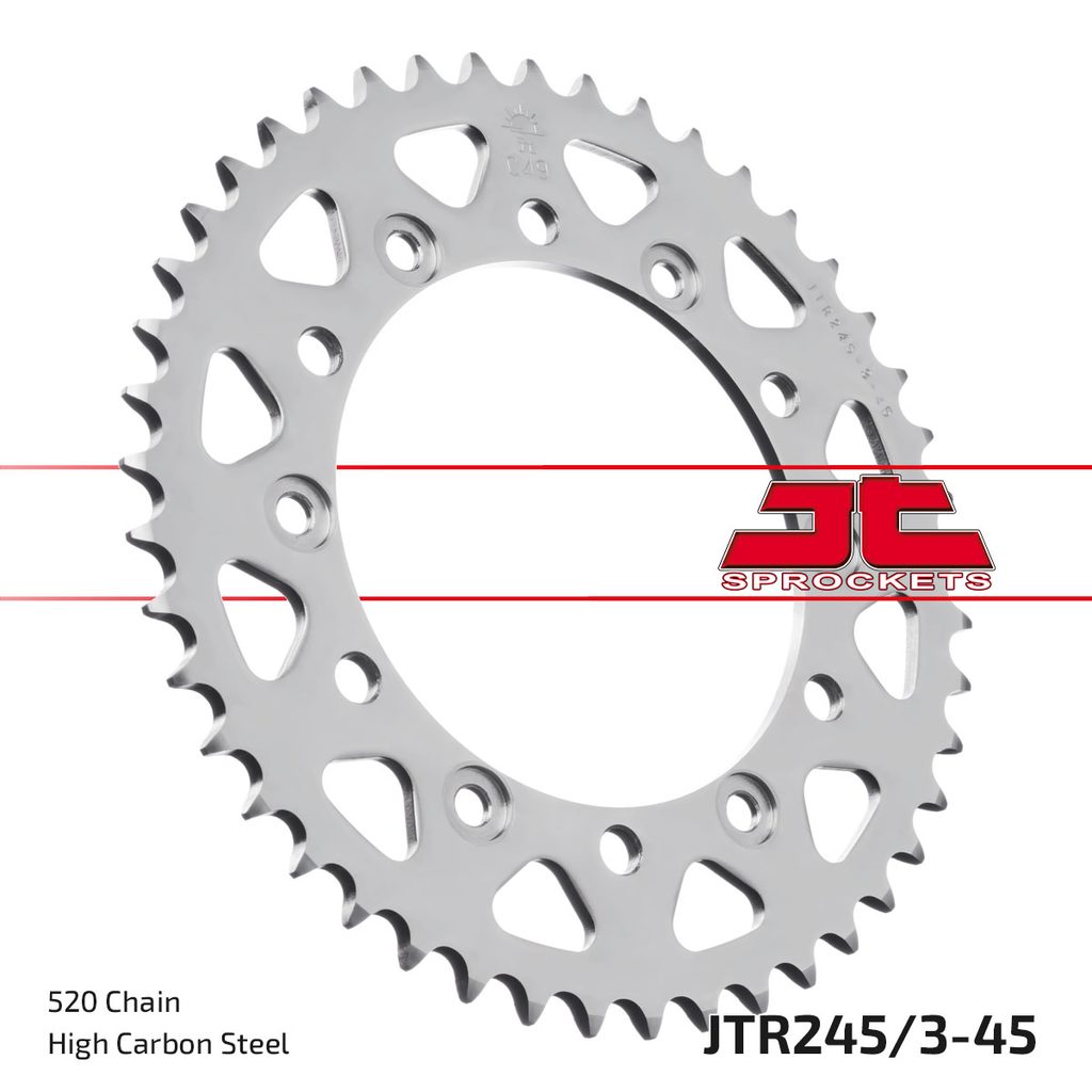 Ocelové zadní rozety JT Steel jsou vyráběny výhradně z nejkvalitnější uhlíkové oceli C49. Sortiment JT Steel nyní zahrnuje více než 2 500 dílů pro všechny motocykly a čtyřkolky (ATV).