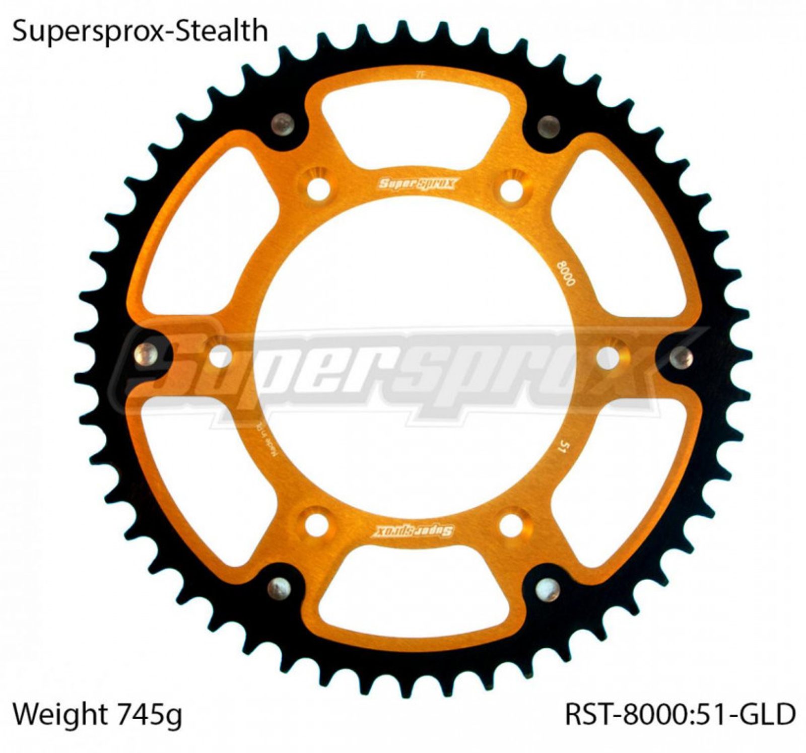 Řetězová rozeta SUPERSPROX STEALTH RST-8000:51-GLD zlatá 51 zubů, 520