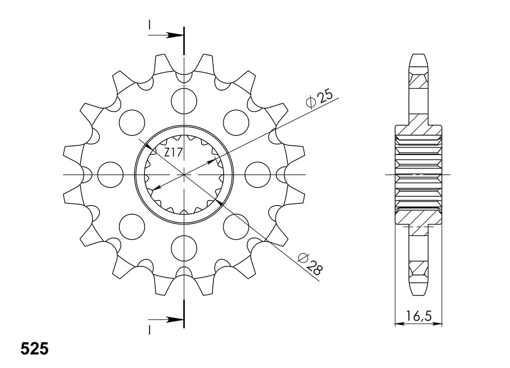 Pevnější zuby = vyšší životnost řetězové sady až o 10%. Kolečko 17z, řetěz 525. Více informací