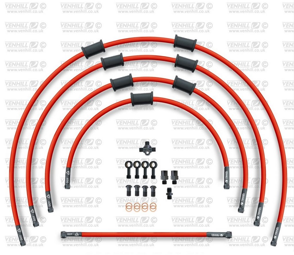 STANDARD Hadice přední brzdy sada Venhill POWERHOSEPLUS SUZ-10002FB-RD (5hadic v sadě) červené hadice, černé koncovky